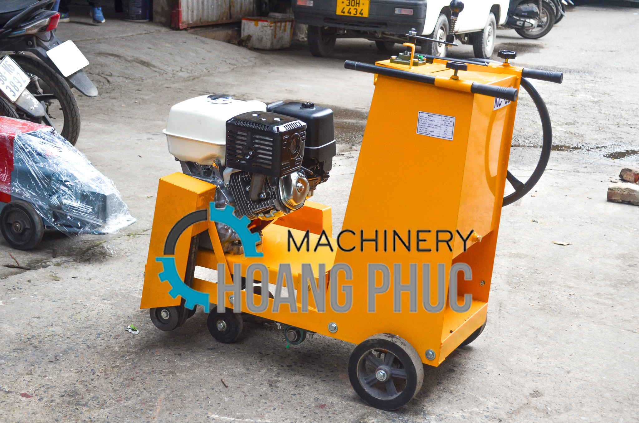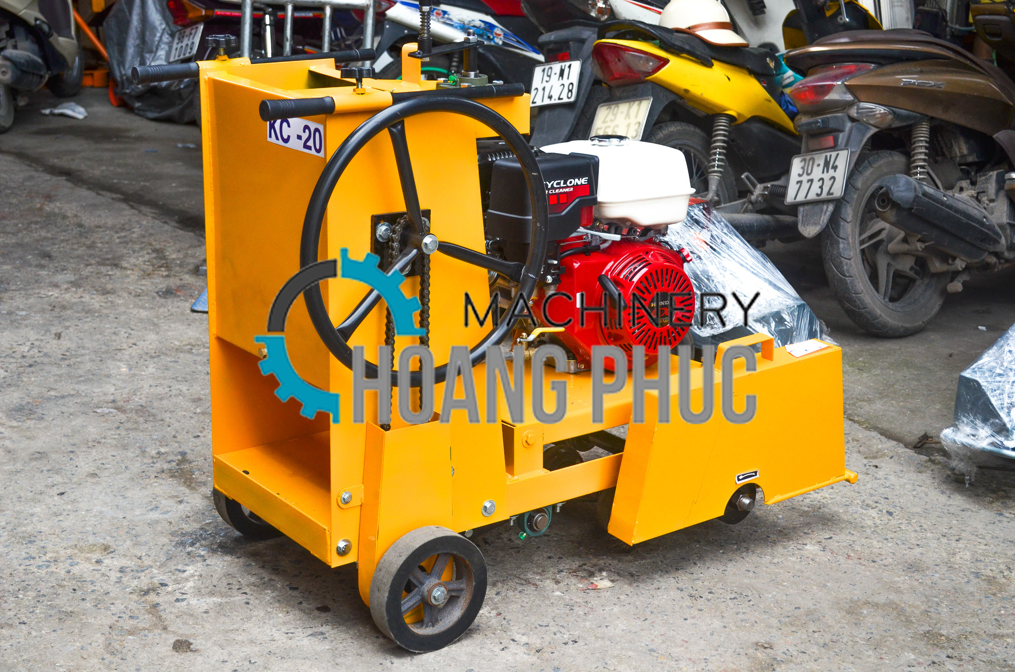 Máy cắt đường bê tông nhựa đường KC20 sử dụng động cơ honda GX390 kiểu 4 thì với công suất 14HP được công ty xuất nhập khẩu Hoàng Phúc nhập khẩu trực tiếp từ Thái Lan về lắp vào khung sườn KC20 của máy. Việc sử dụng động cơ này làm cho máy làm việc với công suất cao hơn , tiêu hao nhiên liệu , bảo vệ môi trường . Hơn nữa, Máy cắt bê tông KC20-gx390 còn được trang bị lưỡi cắt rất là mỏng giúp việc cắt gọt bê tông một cách dễ dàng , đường cắt thẳng , mỏng và đẹp kết hợp với bộ khung bằng thép chắc chắn và nặng. Tất cả những yếu tố này tạo nên một sản phẩm, một cỗ máy mạnh mẽ , đẹp và hoàn hảo trên mọi phương diện. Đây là loại máy cắt bê tông chạy xăng dạng xe đẩy – thích hợp sử dụng cắt những khối bê tông lớn hơn hoặc các mặt bê tông phẳng như mặt đường nhựa đường.