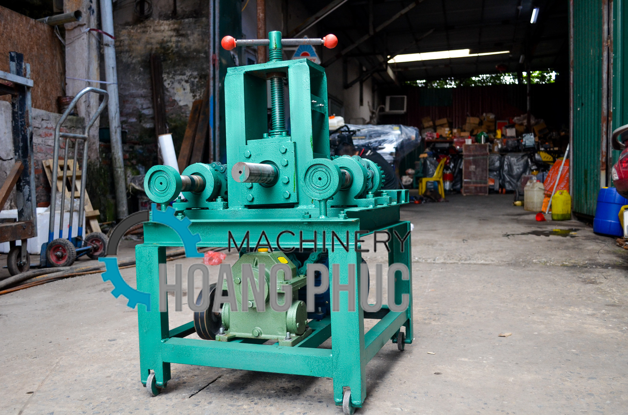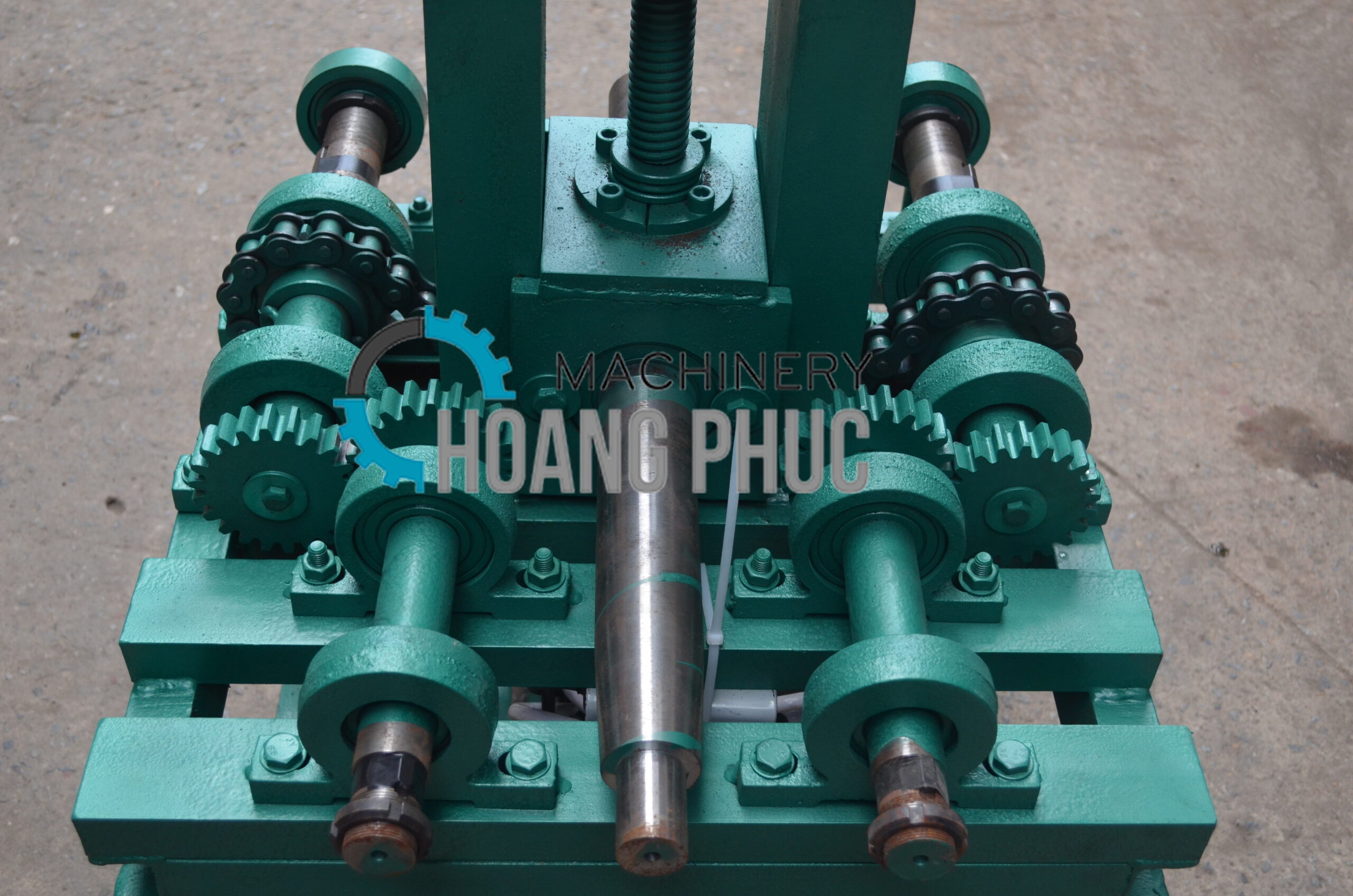 – Lắp puli uốn ống vào ba trục của máy sau đó đưa ống vào và ép trục giữa xuống để đè lên cây ống.